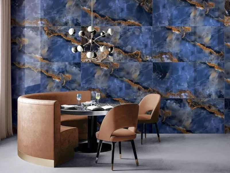 - در سالن و پذیرایی بهتر است از کاشی های بزرگ و براق استفاده شود.